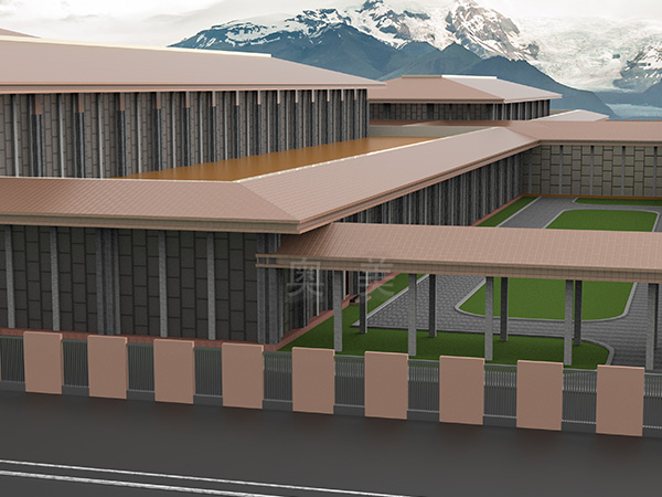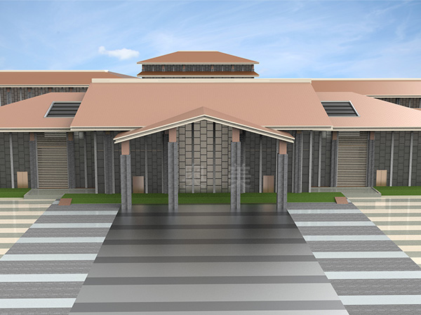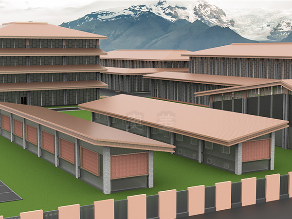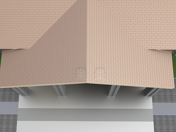 此为连云港人文纪念园项目,此屋面系统采用的是新型建筑材料金属复合瓦铺设而成。