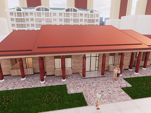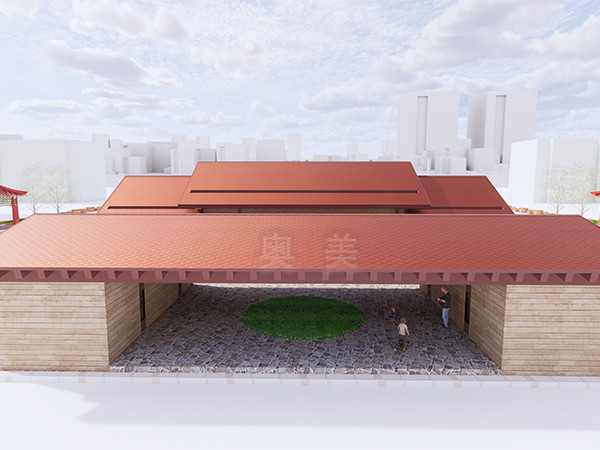 此为潘楼老年活动中心项目,此屋面系统采用的是新型建筑材料金属复合瓦铺设而成。