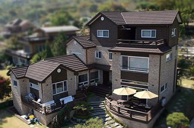 4、树脂瓦:树脂瓦分为天然树脂瓦和合成树脂瓦,我们一般使用合成树脂瓦。合成树脂瓦表面材料是选用超高耐候性工程树脂制作而成,它即使长期暴露于紫外线、湿气、热、寒的恶劣条件下,仍能保持其颜色的稳定性,承载性好在温度较低的地区,即使屋顶常年积雪,合成树脂瓦不会产生表面损坏及断裂现象,表面致密光滑,本身不易吸附灰尘,一经雨水冲刷便洁净如新,屋面接缝少,因此合成树脂瓦比传统瓦的防水性能大大提高。